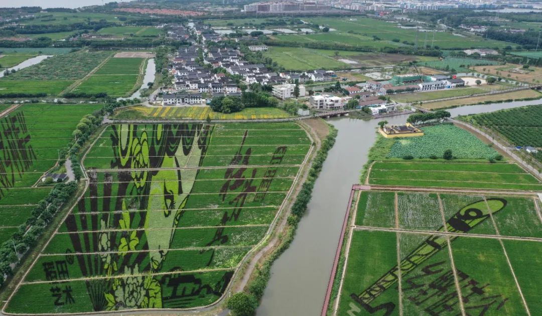 一幅《牡丹亭》稻田3D画展现在昆山市张浦镇尚明甸村的3D稻田艺术画稻田里。(2020年8月8日摄)新华社记者杨磊 摄