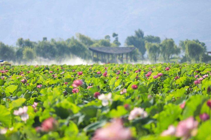 封先生把这些独特景观拍下来,在抖音上播出,瞬间吸睛。他们的第二站便是麒麟水乡,吹着凉爽的风,在千亩荷塘里赏荷、碧波中泛舟、小道上漫步,享受着天然温室的馈赠,每到一处,封先生都能捕捉到令他向往的美景。