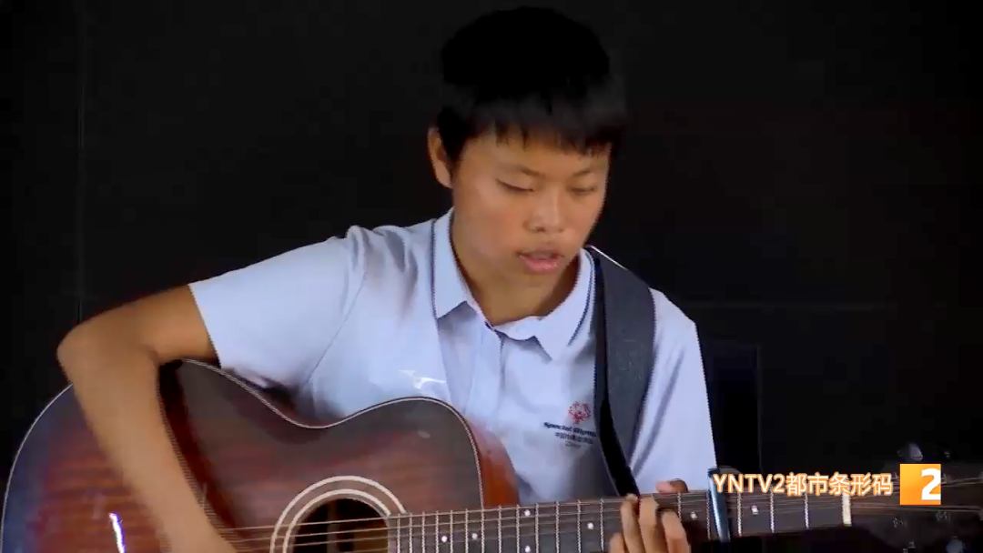 盘龙区培智学校 学生 罗昱茗:“我希望我把吉他练好,有一天能和许巍同台演出,因为我的偶像是许巍,因为我以前学过很多乐器,正当我没有希望的时候,我去看了许巍的一场演唱会,然后看完以后,我说老爸 我想学吉他。”