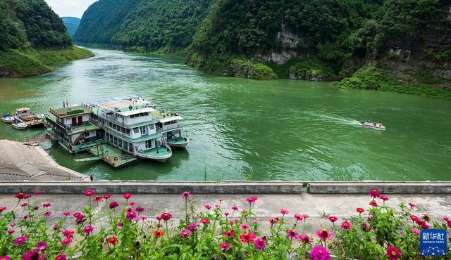 7月11日,游客在贵州省遵义市播州区乌江寨景区乘坐游船游览。新华社发(梁文 摄)