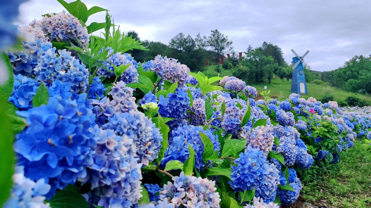 据了解,绣球花又名八仙花、紫阳花等,花色有蓝色、白色、紫红、粉红、桃红等。白虎山的绣球花主要品种有无尽夏、木本绣球、圆锥绣球等品种。大多数绣球的花期集中在5-6月份,花期一般持续一个月左右,而“无尽夏”可以从五六月份一直开到深秋。