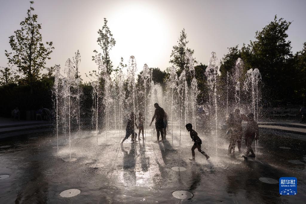 7月23日,儿童在希腊雅典一处喷泉玩水。新华社发(莱夫特里斯·帕察里斯摄)