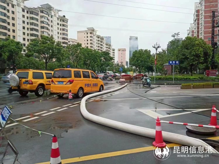 盘龙区防办、属地街道、排水公司、交警部门,在重点路段增加应急力量,做好交通疏导、人员及车辆劝离,同时全力抽排路面淹积水。