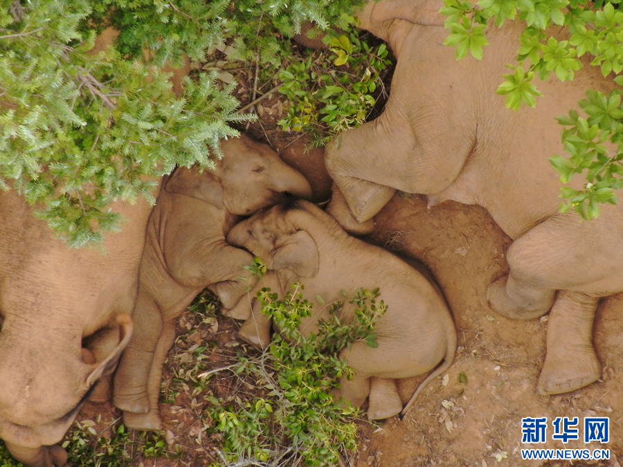 北上南归象群在旅途中留下的影像(2021年6月26日摄)。新华网发(玉溪市委宣传部 供图)