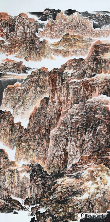 本次展出的《咆哮》、《醉美山阳》、《爨》、《时光记忆之三》、《滇池风雨作龙吟》、《白云青自闲》等巨幛宏构,气势恢宏;新枝老干,或挺拔或疏朗或横斜;花萼秀叶,或清秀或天真或怒放,笔墨超纵、格调甚高。《云阳梯田》、《丝瓜香》、《云巅听涛》等尺幅,能做到画中有诗、画中有趣,设色自然淡雅,构图巧思,极富生意。