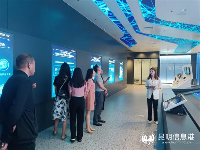云南移动“联创+”5G开放实验室共分为5G联创开放实验室、智慧家庭展厅和智慧政企展示中心三大板块。大家在工作人员带领下参观了5G开放实验室展厅、智慧企业展示中心、智慧家庭展厅,通过观看移动网络发展史、信息技术革新、大数据、人工智能、区块链等新技术运用的视频,了解了国家数字化、网络化发展现状及5G技术与各行业的深度融合情况,领略了新时代科技进步的丰硕成果,感受到新时代科技进步带来的便利。