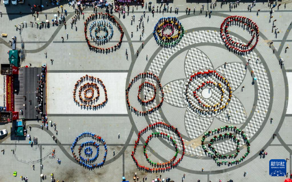 8月10日,群众在贵州省毕节市百里杜鹃管理区鹏程街道进行“乌蒙欢歌”广场舞比赛(无人机照片)。连日来,贵州省毕节市百里杜鹃管理区开展各具特色的文旅活动,丰富游客出游体验。新华社发(范晖摄)