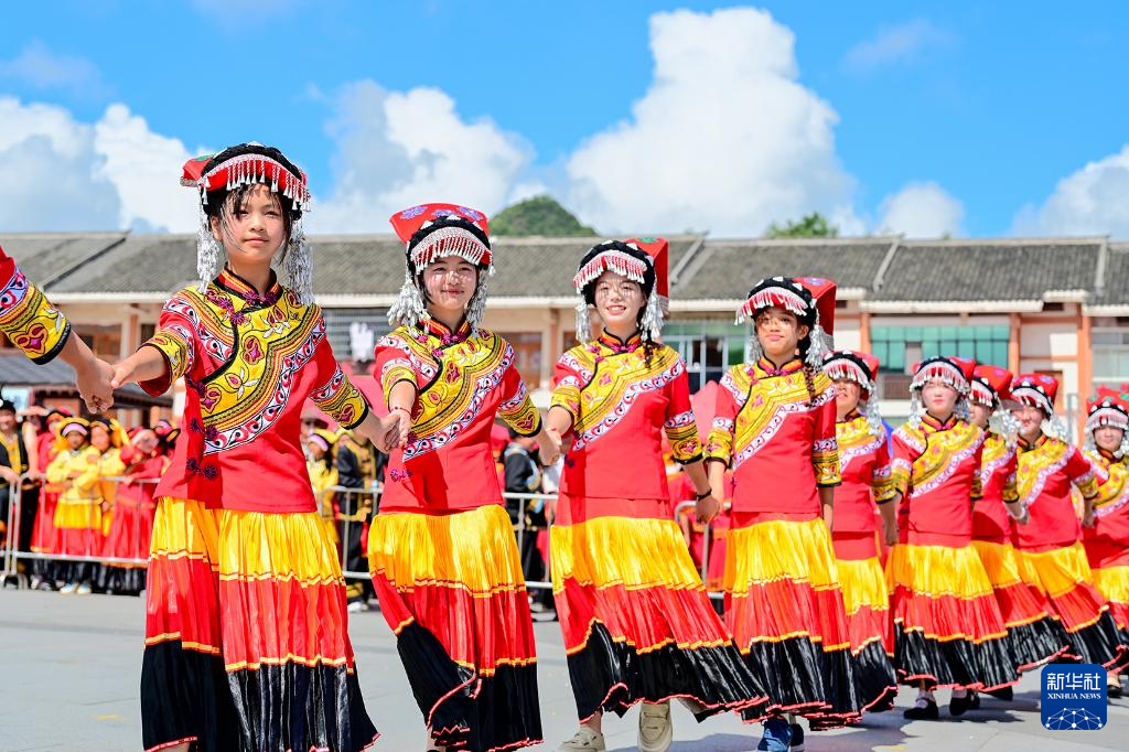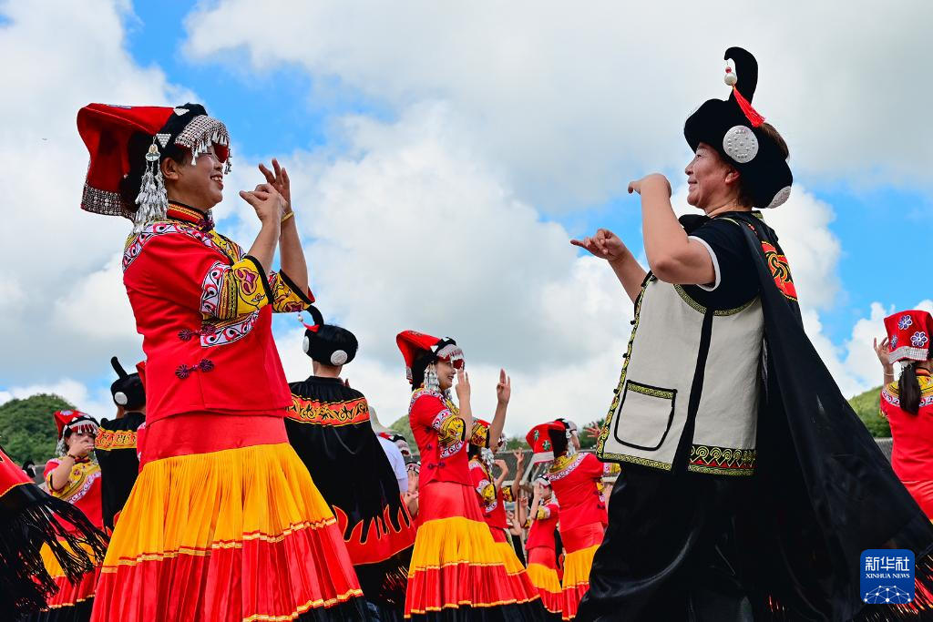 8月10日,群众在贵州省毕节市百里杜鹃管理区鹏程街道进行“乌蒙欢歌”广场舞比赛(无人机照片)。连日来,贵州省毕节市百里杜鹃管理区开展各具特色的文旅活动,丰富游客出游体验。新华社发(李华摄)