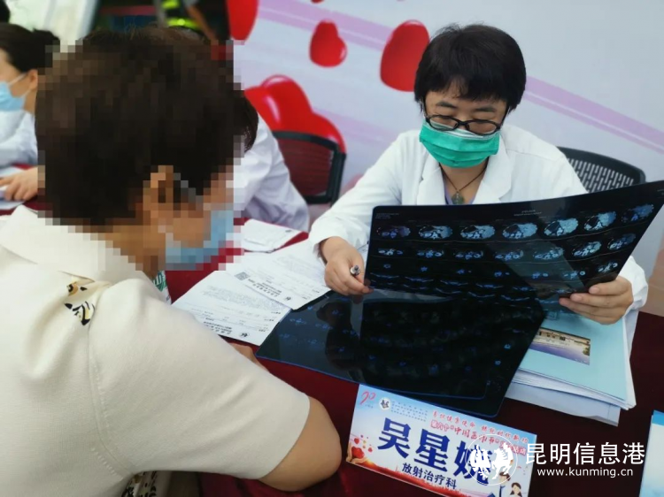 昆明信息港讯 记者卢芝珍 刘莹 8月18日,云南省肿瘤医院(昆明医科大学第三附属医院)在门诊楼前举办昆明医科大学建校90周年系列活动之第六个中国医师节大型健康义诊活动。