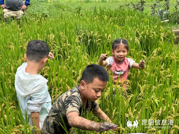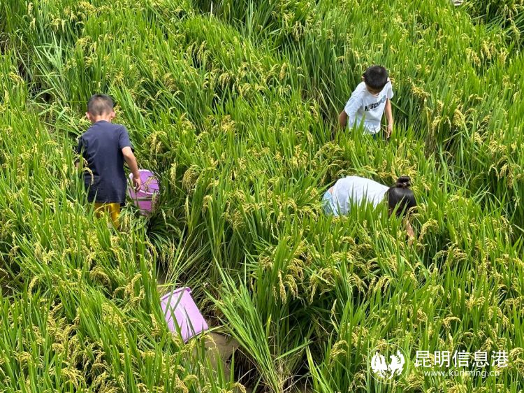大家兴奋地跃入水稻田“埋头苦干”