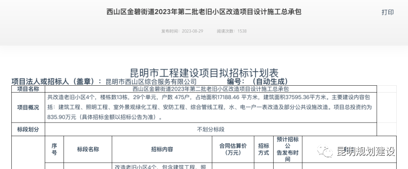 昆明信息港讯(昆明日报 记者李梦瑶)据云南省公共资源交易信息网发布的《西山区金碧街道2023年第二批老旧小区改造项目设计施工总承包招标计划》显示,昆明市西山区金碧街道2023年第二批老旧小区即将改造。