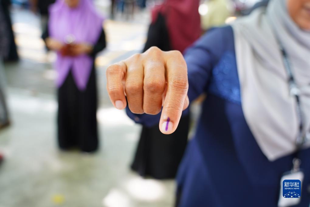 9月9日,在马尔代夫马累,一名选民投票后展示做过标记的手指。新华社记者 车宏亮 摄