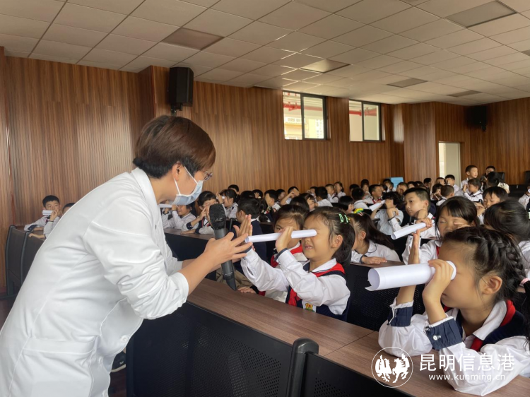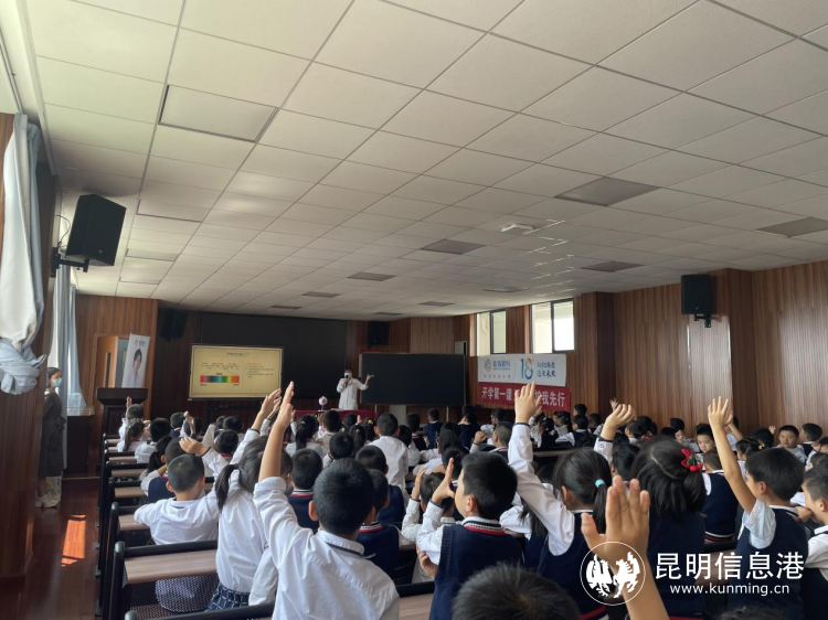 昆明信息港讯 日前,昆明市政协教科卫体委员会、民进昆明市委会、昆明市关工委联合昆明普瑞眼科医院走进红旗小学,开展以“近视防控我先行”为主题的“开学第一课”公益讲座活动。