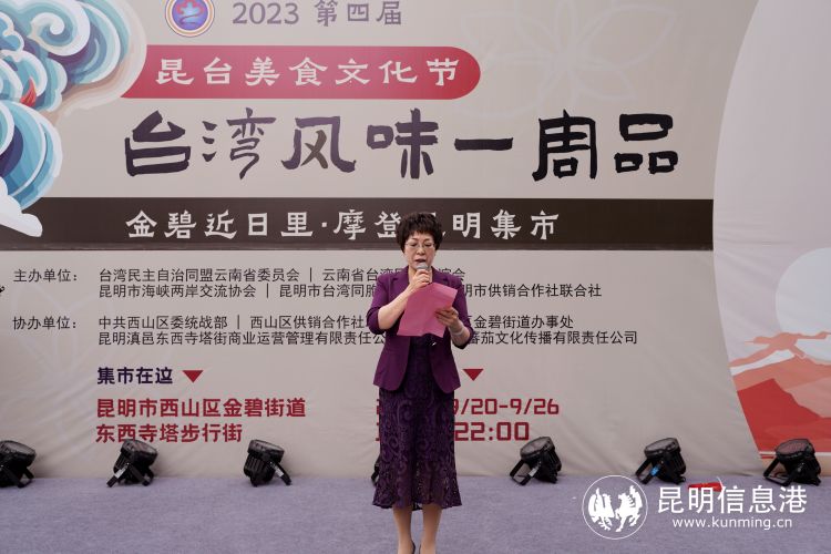 昆明信息港讯 9月20日,由台湾民主自治同盟云南省委员会、云南省台湾同胞联谊会、昆明市海峡两岸交流协会、昆明市台湾同胞联谊会、昆明市供销合作社联合社共同举办的“山海同云 明月同乡”2023年第四届昆台美食文化节在昆明市西山区东西寺塔步行街拉开帷幕。