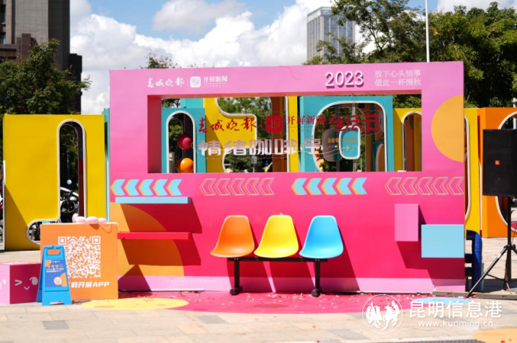 昆明信息港讯 记者李金梓 9月23日至24日,春城晚报(开屏新闻)生活节“送服务”系列之一的“情绪咖啡亭”活动在七彩云南·第壹城正式启动。该活动以“情绪自愈”为主题,以多巴胺设计风格布置四组互动艺术装置,邀请市民朋友们参与体验,并通过心理沙龙和大家一同探索“情绪识别”、“情绪自愈”等命题,体察当代人的情感需求,传递人文关怀与城市温度。