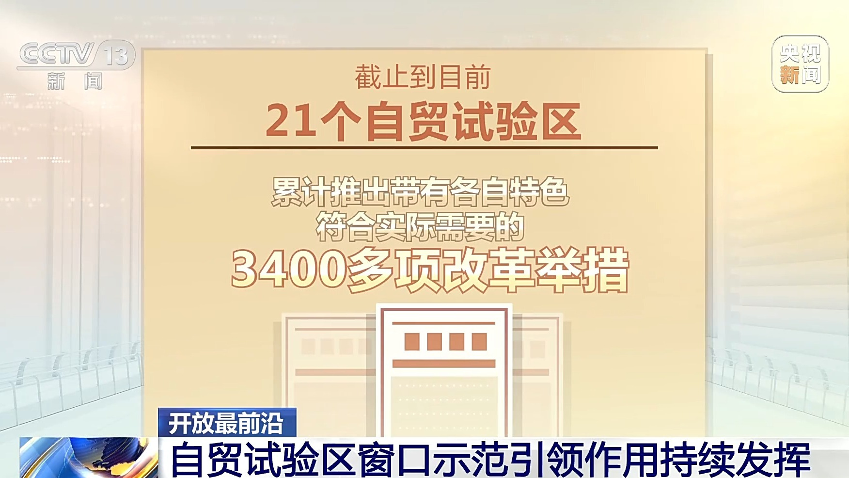 据不完全统计,截止到目前,21个自贸试验区累计推出了带有各自特色、符合实际需要的3400多项改革举措,其中,超过300项制度创新成果被复制和推广到全国,自贸试验区的窗口示范和引领作用持续发挥。