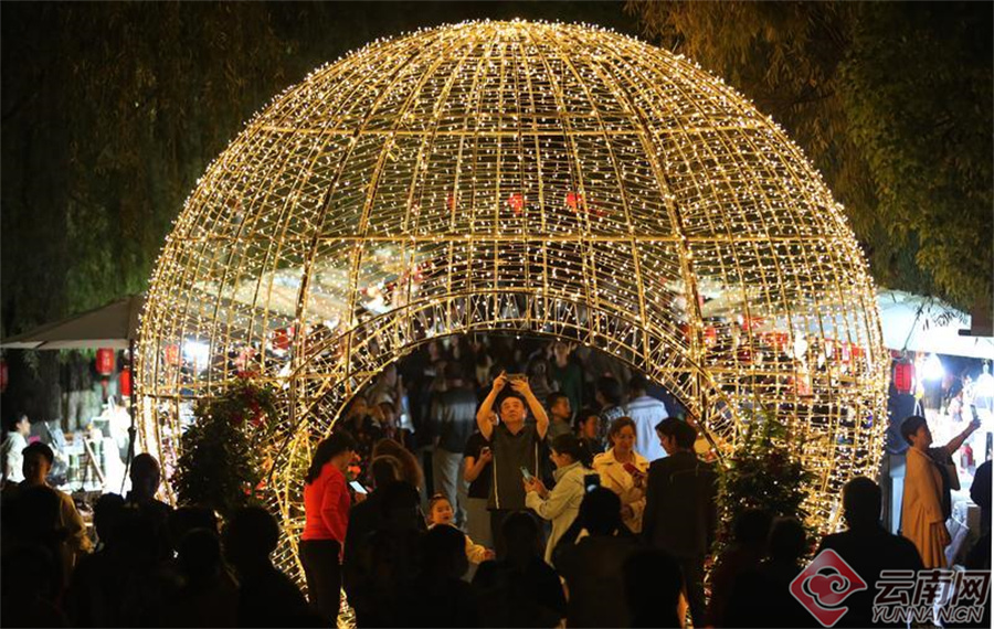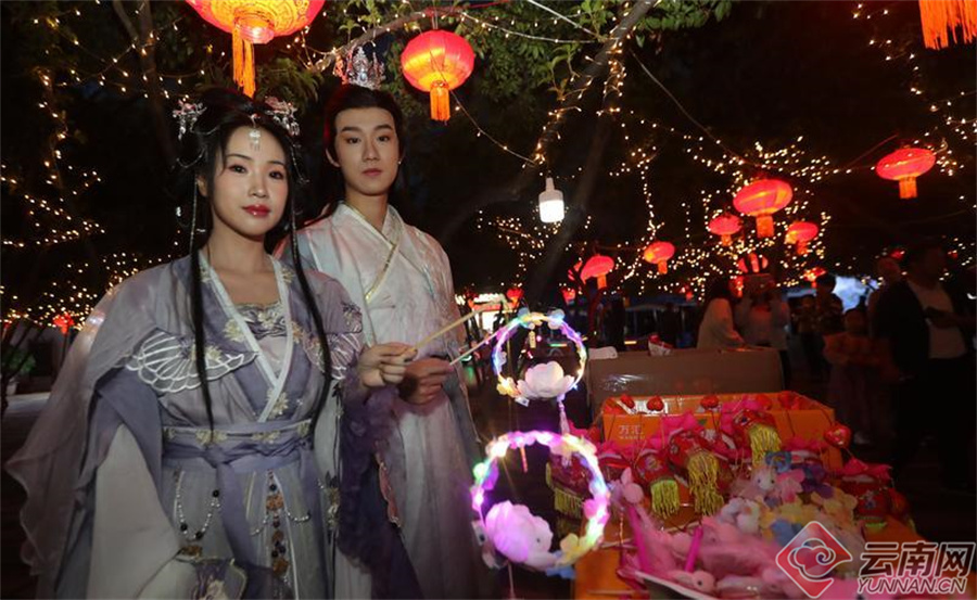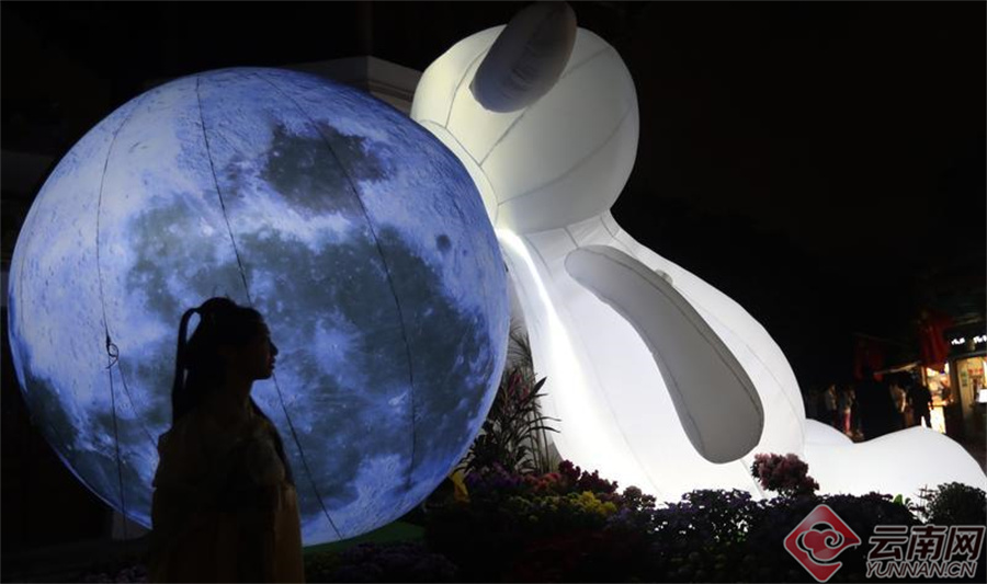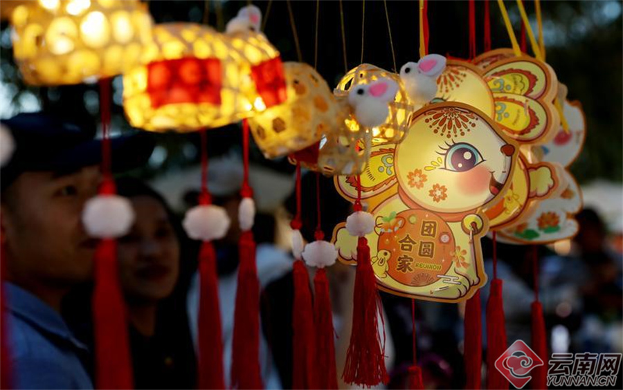 昆明翠湖公园中秋文创集市的中秋彩灯。