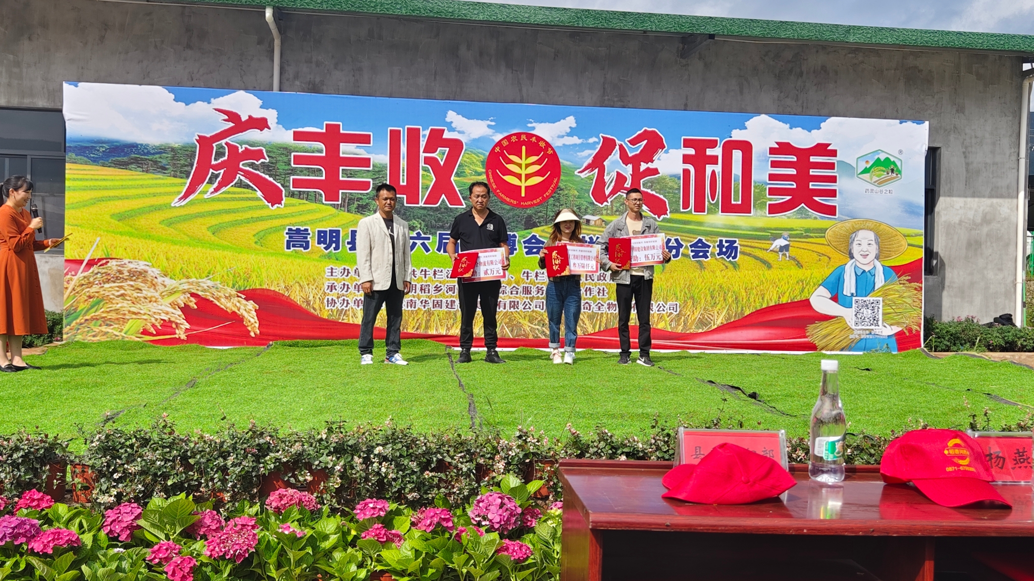 开幕当天农民丰收节活动内容丰富,上午游客可以欣赏龙狮、歌舞表演,更有有机大米现场举牌认购;下午游客可以自行组织开展稻谷收割体验,也可以徒手捕捞稻花鱼和稻田鸭,最后开展以杀猪菜为主的长街宴,沉甸甸的稻穗寄情丰收,受到游客和市民好评。“看到水稻长势喜人,又到了丰收的季节,希望嵩明县发展越来越好,后续活动我也会带着家人一起参加。”参加开幕仪式的杨先生说道。
