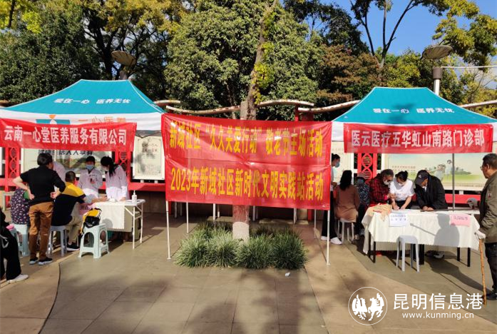 昆明信息港讯 10月19日,新域社区党委联合高新北区卫生服务中心、省红十字会、一心医养、医云医疗、普瑞眼科医院等专业医疗机构在高新时代广场开展义诊活动。