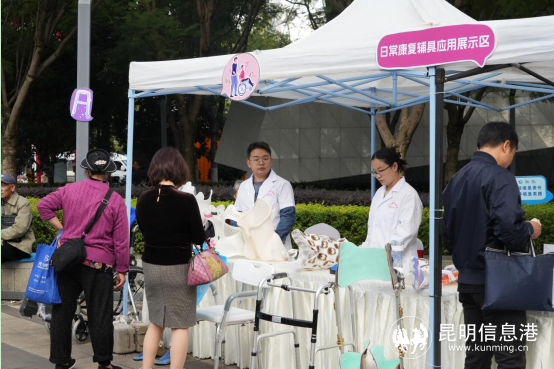 昆明信息港讯 10月17日,“公益有爱 生活无碍”——云南福彩公益伴我行辅具科普展示活动在昆明塘子巷小游园举行,云南省民政厅二级巡视员、省康复辅具技术中心党总支书记杨卫东,云南省福利彩票发行中心、云南省康复辅具技术中心及和平路社区负责人出席活动。