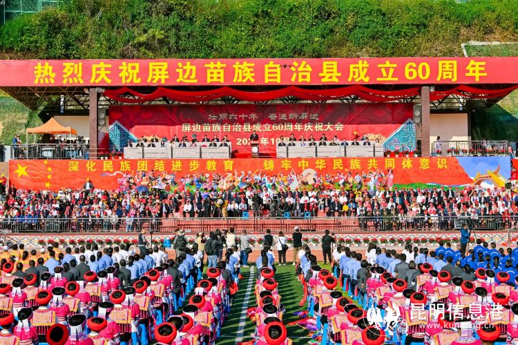 壮丽六十年,奋进新屏边。10月21日,屏边苗族自治县成立60周年庆祝大会在屏边县第一中学体育场隆重举行。