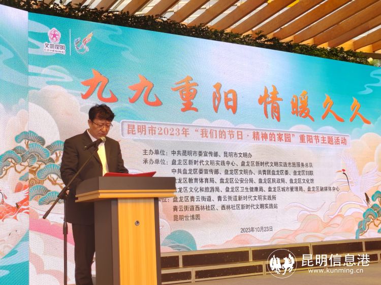 昆明信息港讯 记者李红鸾 10月23日,“九九重阳 情暖久久”——昆明市2023年“我们的节日•精神的家园”重阳节主题活动在位于盘龙区的昆明世博园启动,盘龙区道德模范、身边好人、文明家庭代表及百余名老人齐聚一堂,欢度重阳。