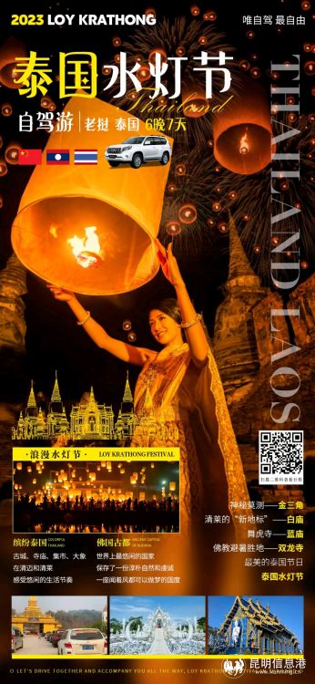 在自驾行程中,前往泰国、老挝的自驾车旅游者可以感受11月"水灯节"空前的盛况。水灯节,是泰国民间最富有意义的节日,在每年之泰历十二月十五日夜晚间举行(公历11月)。在雨季过后的这一时期,泰国正是河水高涨,月儿清辉的美好季节,按照泰国传统习俗,泰国人将在水灯节将亲手制作的水灯放入河流中,以寄托心中美好的愿望和祝福。因此,每逢泰国水灯节的夜晚,无论是城市或在乡镇,只要是濒临河港或湖边的地方,水面上都会飘满水灯,闪亮着一片烛光,和着轻快抑扬的"放水灯"歌声,带领游客感受异域的浪漫之夜氛围。