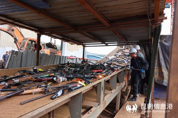 昆明信息港讯 记者合宇聪 10月24日,昆明市公安局组织开展以“治枪爆、除隐患、保民安”为主题的集中统一销毁非法枪爆物品活动,对近年来全市公安机关收缴和群众主动上缴一批非法枪支和管制刀具进行集中安全销毁。