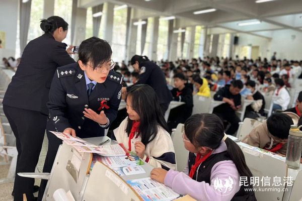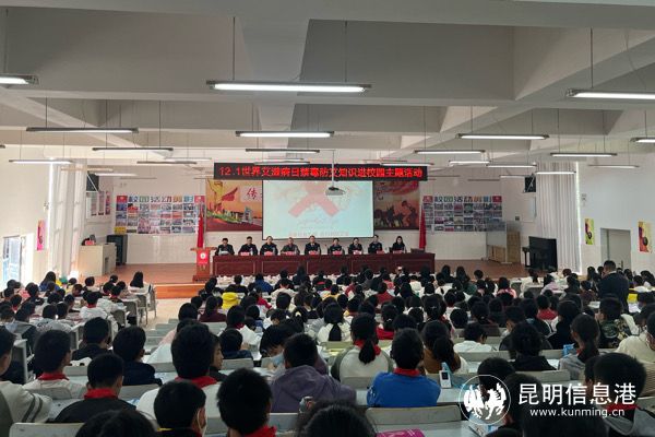 昆明信息港讯 记者合宇聪 12月1日是第36个“世界艾滋病日”,云南省女子强制隔离戒毒所联合嵩明县人民法院、嵩明县人民检察院、嵩明县公安局、嵩明县司法局、嵩明县卫生健康局、云南工商学院举办“12·1世界艾滋病日主题活动”,走进云南商务职业学院、嵩明县杨林初级中学开展禁毒防艾知识进校园宣传活动。