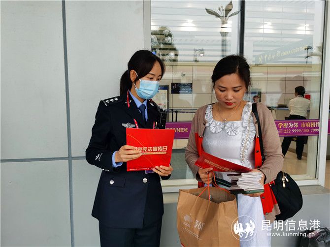 昆明信息港讯 记者江枫 通讯员陈宣伊 12月4日是第十个“国家宪法日”,西双版纳出入境边防检查站积极开展“国家宪法日”宣传活动。