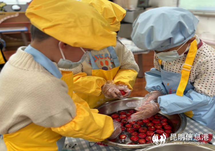 在这个时节,也有一些传统的美食,既美味又养胃,是人们在寒冷的冬天里温暖的陪伴。孩子们在老师的帮助下,自己动手制作红薯粥和山楂糖雪球。他们有的将红薯切成小粒送到厨房,制作成香气四溢的红薯粥;有的将山楂洗干净,沥水后晾干,然后按照步骤将山楂做成粘满糖霜的山楂球。美食全部制成后,孩子们争先恐后地邀请老师品尝他们的劳动果实,分享这份甜蜜的喜悦。