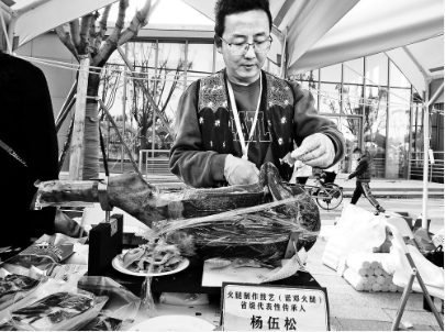 云龙县诺邓火腿食品厂带来的火腿,都是腌制3年以上的火腿。其以散养的黑猪为原料,选用本地自产自销的盐巴,存放时间越长,香味越浓。“这次带了近5000元的展品,没想到一早上就差不多卖完了。”火腿制作技艺(诺邓火腿)省级代表性传承人杨伍松说,“希望以后多举办这样的展会,让更多的消费者了解并爱吃诺邓火腿。”