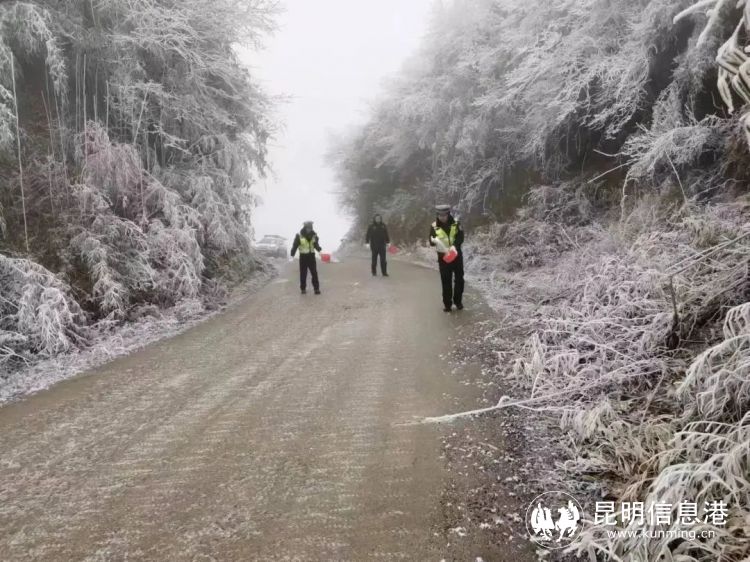 12月16日,永善县马楠、水竹、莲峰、茂林、伍寨等地受寒潮天气影响,气温从10多度骤降至零度以下。面对极端冰雪天气,永善警方提前谋划,组织警力赶赴值守,对结冰路段撒盐融冰,竭力守护道路通行安全。迎冰雪,战严寒......(昆明信息港 记者合宇聪)