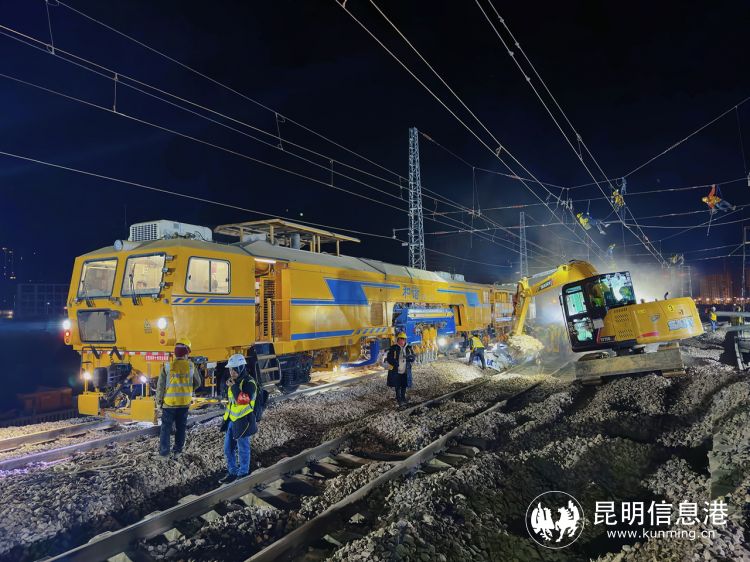 此次施工中,中国铁路昆明局集团有限公司昆明工务机械段投入了两台全国最先进的捣固稳定车和两台岔捣车,该线路捣固车可以自动对线路进行抄平作业,整个作业效率比其他捣固车提高了20%左右。
