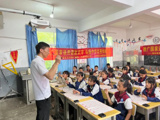 2023年暑假期间,马克思主义学院“推普助力乡村振兴”实践团队赴红河州元阳县,走进民族团结示范村、易地扶贫搬迁村、非遗文化传承村,走村访入户,调研边疆民族村寨“推普”实际情况,积极开展“推普”活动。实践团队开展普通话发音技巧训练、笔画顺序结构讲解、毛笔书写教学等培训,通过古诗词书写赛、成语接龙赛、偏旁组字赛、看图猜词赛等系列“推普”趣味游戏活动,激发小朋友们学习国家通用语言文字的兴趣。