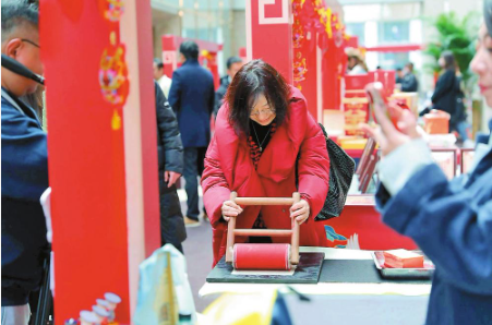 充满德宏元素的傣族剪纸、傣陶、葫芦丝等非物质文化遗产和德宏犀鸟系列图书等文创产品精彩亮相,吸引了来自南亚东南亚媒体和各界嘉宾的关注。各国朋友在剪纸老师的指导下,剪出寓意新春佳节来临的“福”字。云南国传中心海外传播官、缅籍专家龙威说:“小小的剪纸融入了精致的民族文化,今年春节要把德宏的‘年味’带回家。”