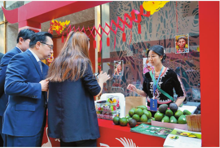一款咖啡与牛油果融合的饮品为普洱展区带来很多“留”量。大家一边回味着牛油果浓郁醇厚的丝滑果香,一边好奇地向参展人员了解普洱市孟连傣族拉祜族佤族自治县这个“中国牛油果之乡”的样子。“10多年前孟连县就已经开始种植牛油果,目前已成功创建为‘一县一业’牛油果特色县。”孟连县产业投资集团有限公司营销部负责人王艳为家乡的牛油果如此受欢迎而感到无比开心。