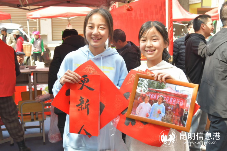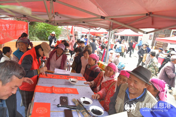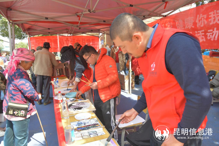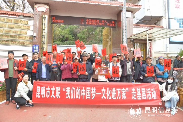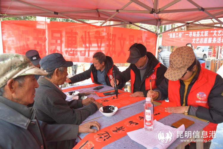 昆明信息港讯 记者王奕然 2月2日,新春佳节即将到来,“强基工程”——昆明市文联“文艺进万家 健康你我他”2024年迎新春文艺为民志愿服务活动在寻甸县金源乡开展,来自昆明书法家协会、昆明美术家协会、昆明摄影家协会的会员在活动现场用笔墨和相机为广大群众送上新春的祝福。