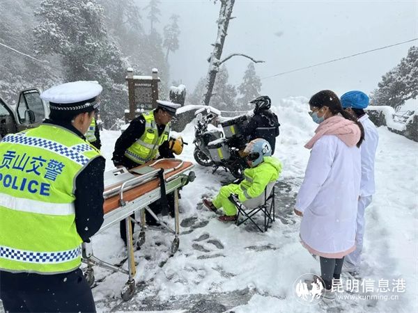 昆明信息港讯 记者合宇聪 近日,怒江州贡山县公安局交警大队接到指令,“在独龙江公路隧道2公里处,一辆摩托车在行驶中不慎侧翻,导致驾驶员左腿骨折请立即前往救援”。此时,高黎贡山独龙江隧道段正在下大雪,一场生死救援至此展开……
