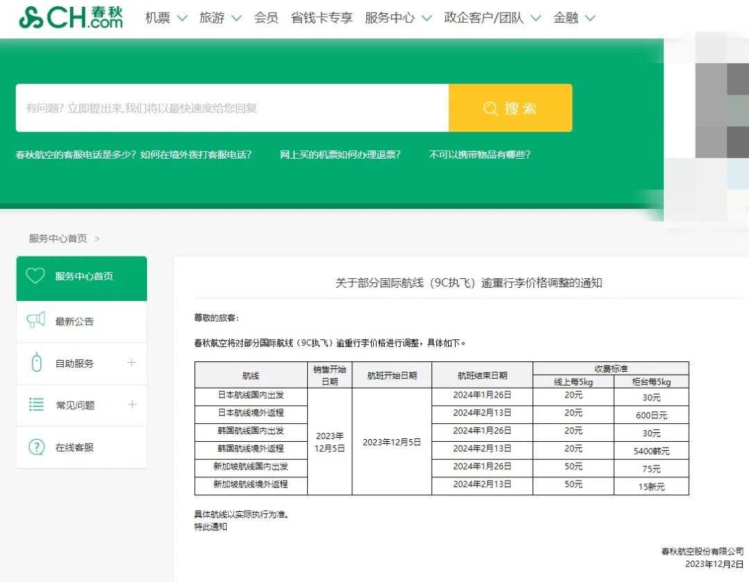 仔细一看,8到11元再加上税费的票价来自春秋航空公司,购买这家航空公司的机票需要注意诸多方面,其中一点就是不可以免费托运行李,如果有托运需求大约每公斤75元。