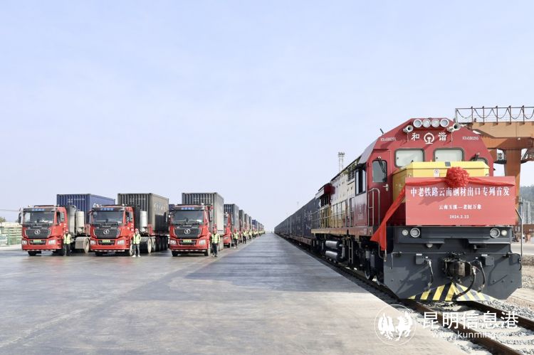 昆明信息港讯 记者上官艳君 2月22日上午10时30分,在列车的轰鸣声中,满载26车螺纹钢的货运列车,从玉溪研和站货场缓缓加速,驶向老挝首都万象,标志着中老铁路云南钢材出口专列正式发车。经过72小时、全程992公里运输,这批共806吨建筑材料将迅速投入老挝万象水利及工程建设,为当地城市发展添砖加瓦。