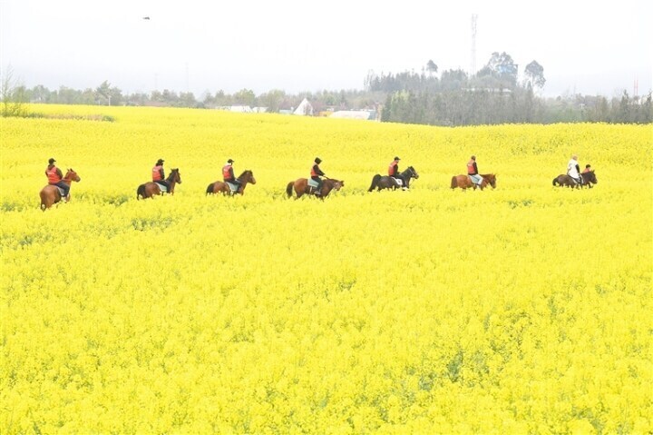 满目金黄香十里,一方春色醉千山。在板桥镇金鸡村的油菜花田里,来自重庆的几位游客正在花田中拍照。“这里真是太美了,成片的油菜花点缀着无数锥状峰林,将这个春天装扮得多姿多彩,美丽无比。”其中一位游客激动地说。壮观的花海吸引了无数游客奔走在花田间,领略大美罗平的精彩世界。他们在欣赏了大自然美景的同时,又放松了身心,愉悦了心情。