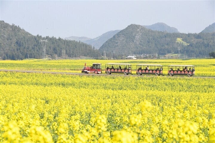 早春二月,罗平县100万亩油菜花迎春盛开,金灿灿的油菜花海吸引全国各地的游客纷至沓来,畅游花海,沐浴北半球最早的春天气息。