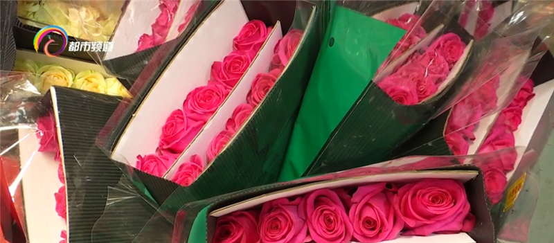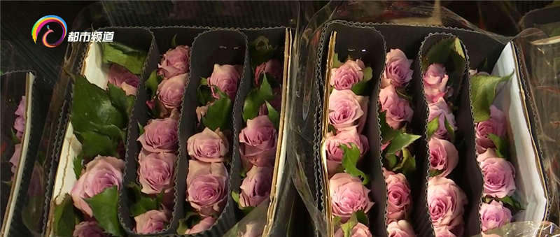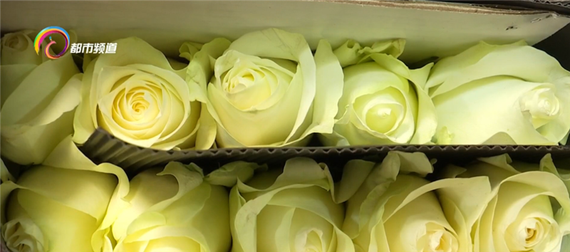 昆明国际花卉拍卖交易中心 品控中心质检员 岳喜郭:“现在我正在对下午拍卖的货品进行质检,这两天的货品,花形、花色都明显高于冬季,这些货品都是为三八妇女节准备的。”
