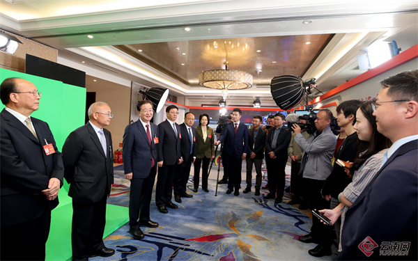 王宁、王予波、石玉钢等走进媒体采访间,与人民日报、新华社、中央广播电视总台、经济日报、中新社、云南日报、云南广播电视台等媒体记者亲切交流,向各位记者并通过大家向长期关心支持云南的中央媒体以及全省广大新闻工作者表示问候和感谢。