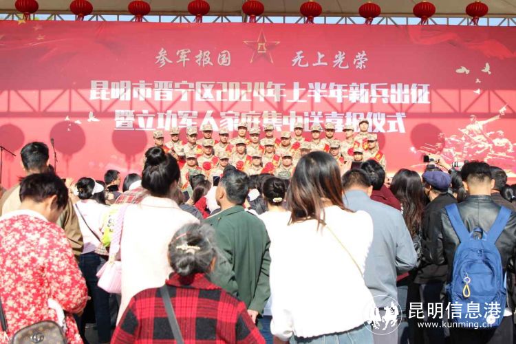 昆明信息港讯 记者薛江涛 通讯员张磊 3月15日,晋宁区在郑和广场举行2024年上半年新兵出征暨立功受奖集中送喜报仪式。