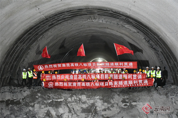 4月8日上午9点30分,随着最后一次爆破,中铁十六局承建的渝昆高铁云贵段站前8标项目小新街隧道顺利贯通。30分钟后,陈家隧道也实现安全贯通。
