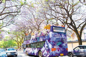 随着教场中路蓝花楹次第盛开,以及2024年第六届中国·昆明蓝花楹文化艺术节即将开幕,教场中路蓝花楹主题赏花巴士已发车,目前共有三辆双层敞篷巴士交替运营,为市民和游客提供更近距离的蓝花楹观赏角度和浪漫打卡游览体验。