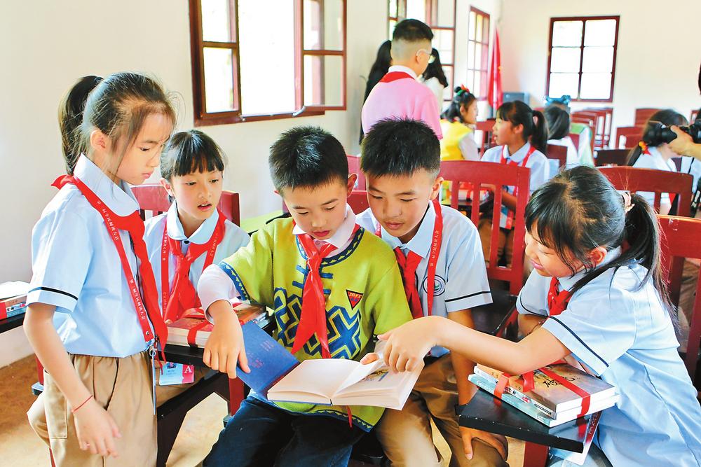 4月22日,第三届全民阅读大会预热活动在云南陆军讲武堂及西南联大纪念馆举办,云南、贵州两省少年儿童共同开展“重温历史岁月,同铸少年红心”主题阅读活动。图为云贵两省少年儿童在原西南联大教室开展阅读活动。(云南日报 记者胡妤雅 见习记者高吴双)