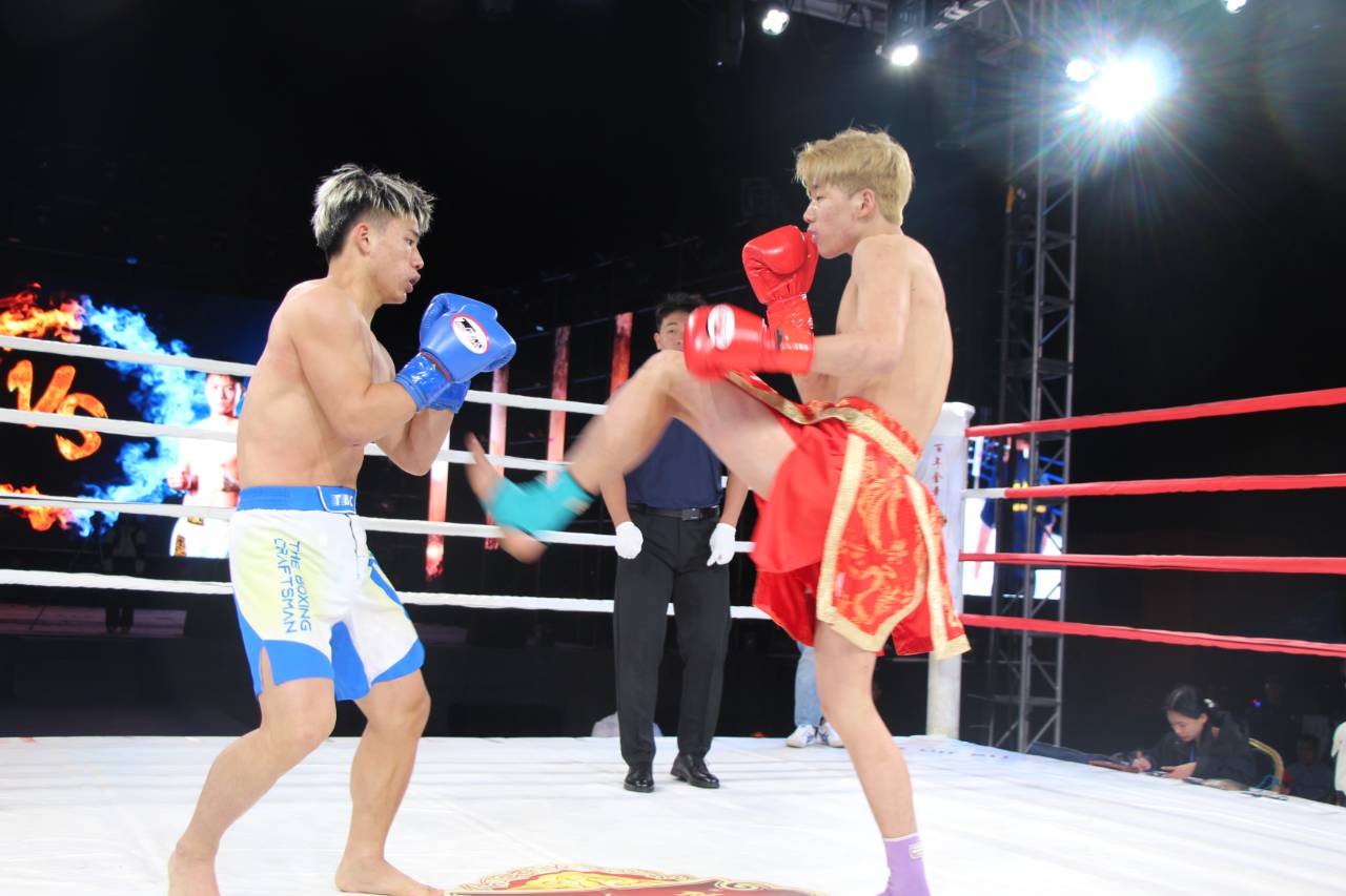 当晚,共举行了男女8组比赛。赛场上,各选手你一拳我一拳,挥拳如雨,拳脚相加,赛出风格、赛出水平。拳王挑战赛比赛前,还举行了精彩的武术表演。
